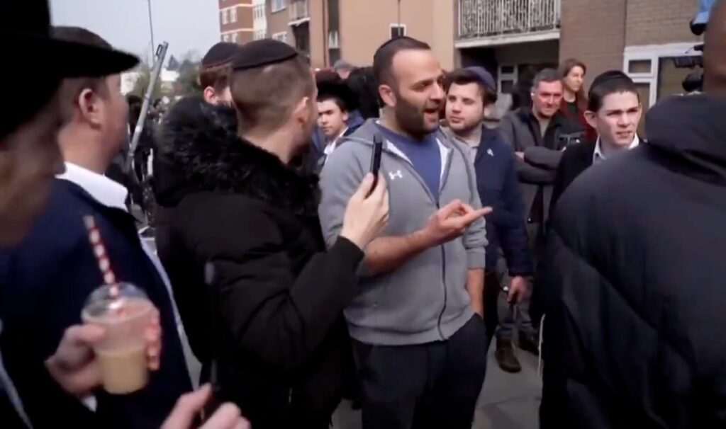 Special Constable David Soffer, wearing grey hoodie, in Golders Green on Monday (Photo: YouTube / Middle East Eye)