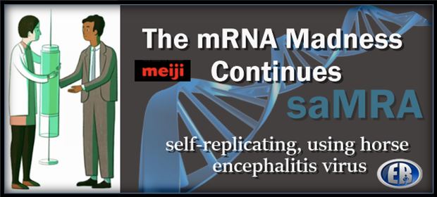 ER Editor: This is so beyond the pale in view of everything we know to date that we wonder if it’s really true. Many of the howlers known about the Covid 19 vaccine, for example (too few trial subjects, no reliable data for safety & efficacy, rushed, etc.), are simply being replicated here. Isn’t the Covid vaccine essentially self-replicating? Nobody knows what the off-switch is with that. This new vaccine appears to code for more proteins using a horse encephalitis virus. Wowee! Clown world.